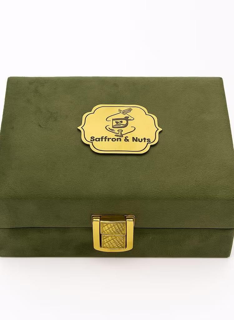 Premium Olive Green Velvet Saffron Gift Box | 10g